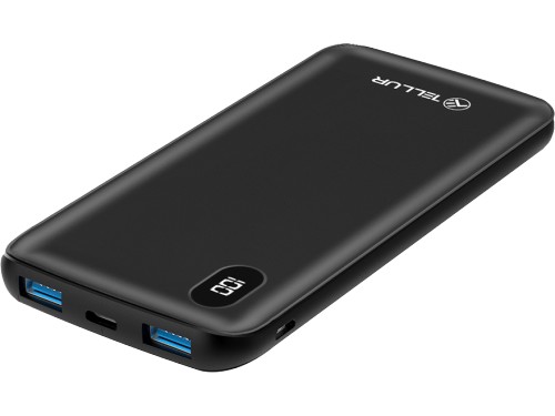 10000mAh Powerbank - Tellur PD100 Display, Output 18W: 1xType-C PD3.0, 2xUSB QC3.0, Input: 1x Type-C, 1x micro-USB, 230g, Black TLL158231