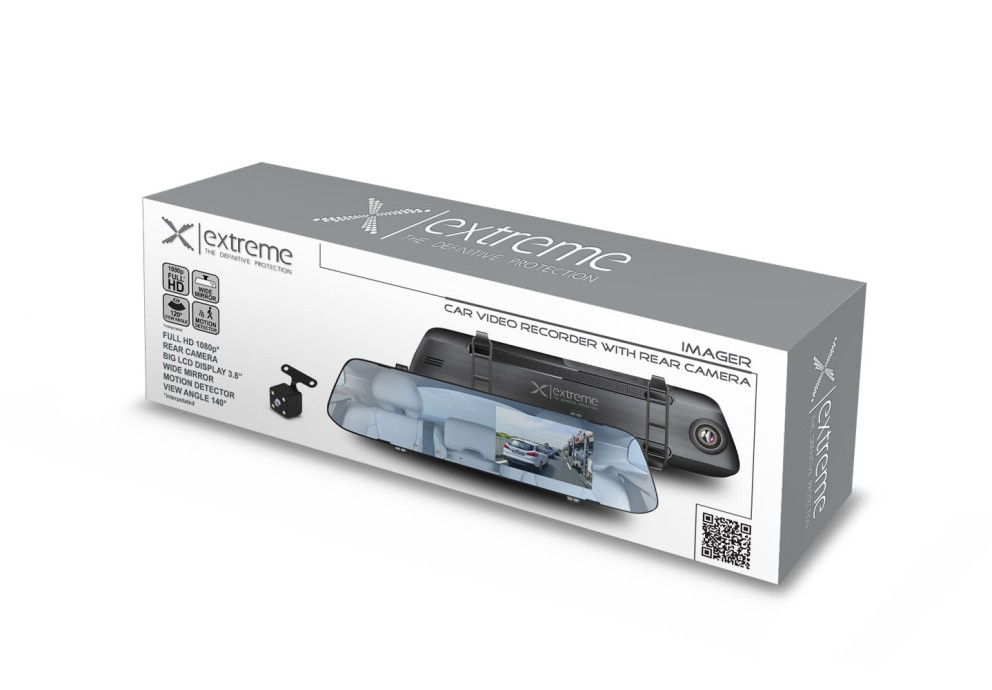 Car Video Recorder EXTREME IMAGER XDR106, with Rear Camera, Wide mirror, Resolution of recorded movies: Front camera: 1080p, 720p, Rear camera: 720p ,