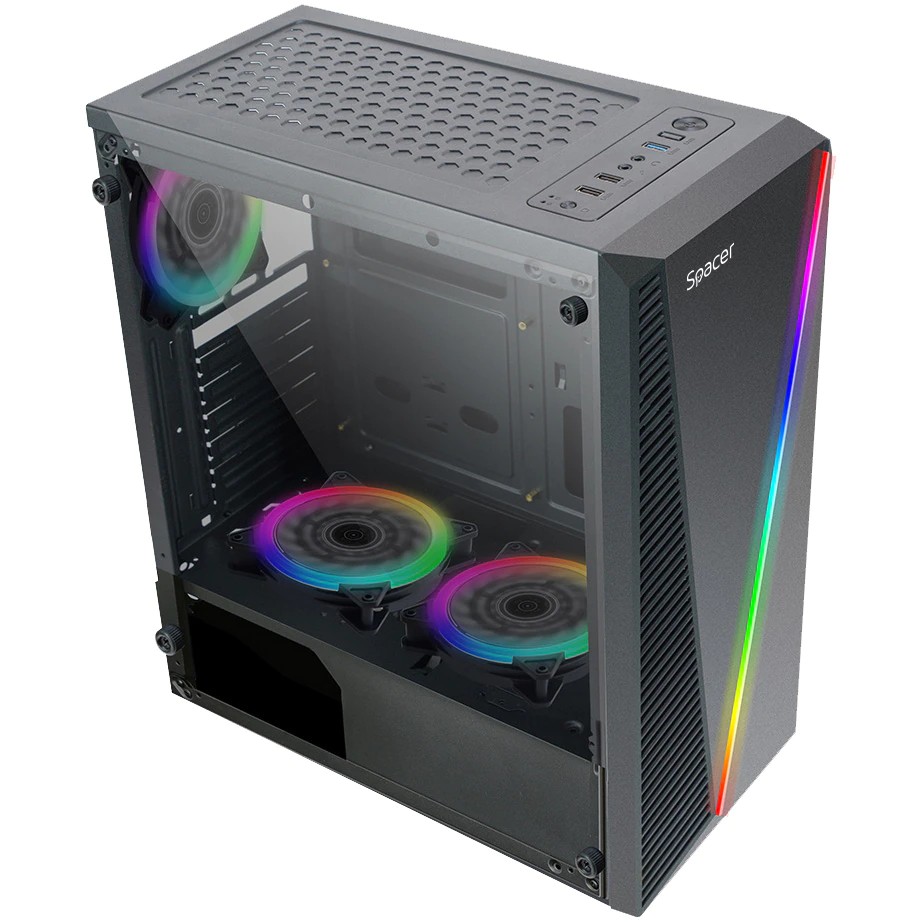 Case SPACER - gaming, Middle Tower, ATX, "THOR", fara sursa, sticlasecurizata, 4 x fan, USB 2.0 x 2, USB 3.0 x 1, mesh, fan controller telecomanda, "S