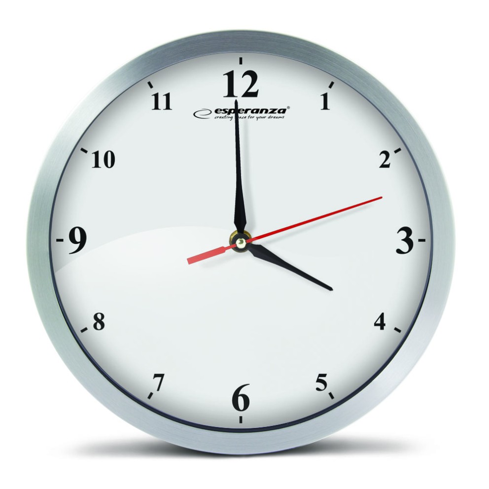 Clock Wall Esperanza DETROIT EHC009W White, 30 cm, Aluminium frame, Quiet movement, hook for easy installation, Power: 1x AA battery (not included)