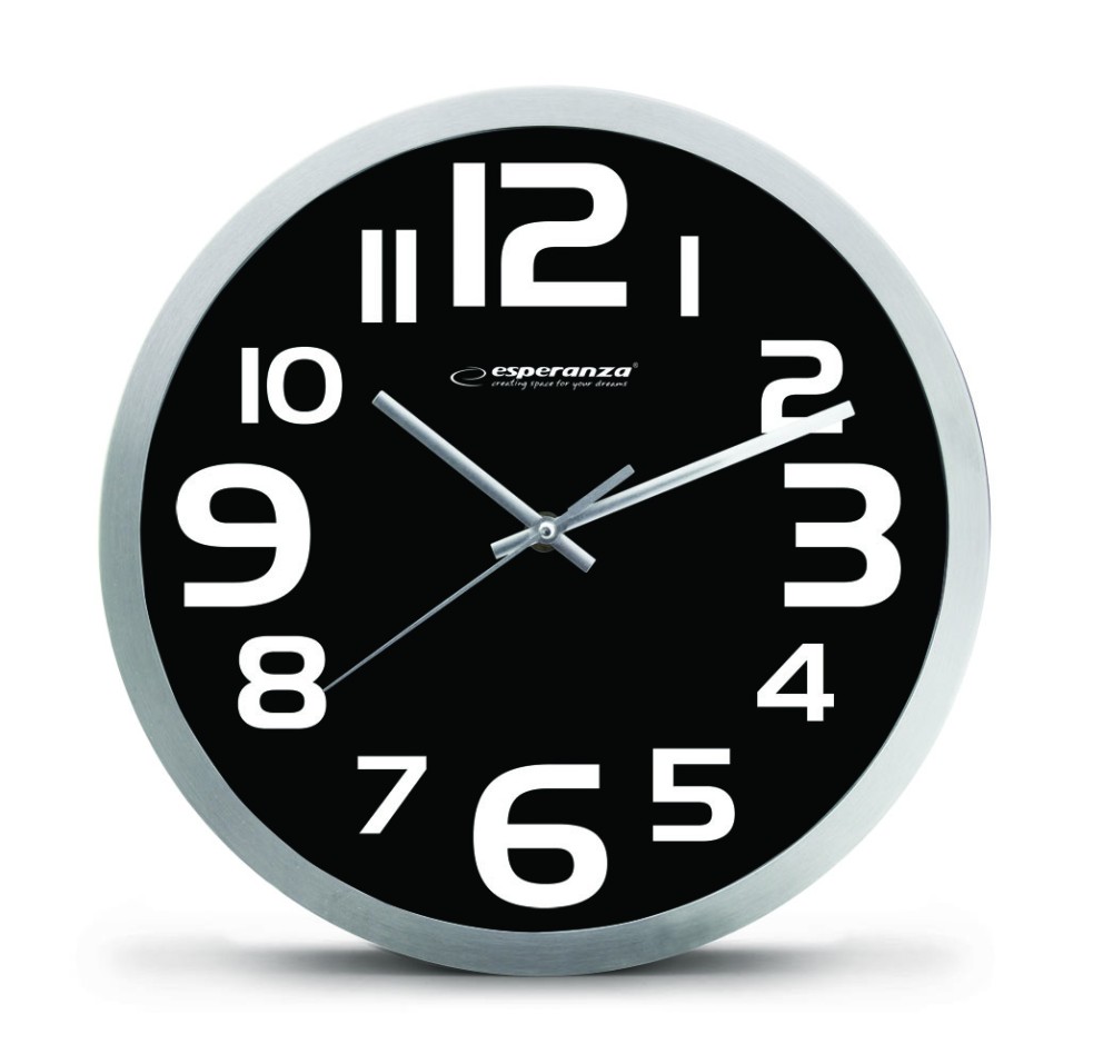 Clock Wall Esperanza ZURICH EHC013K Black , 25 cm, plastic frame, Quiet movement, hook for easy installation, Power: 1x AA battery (not included)