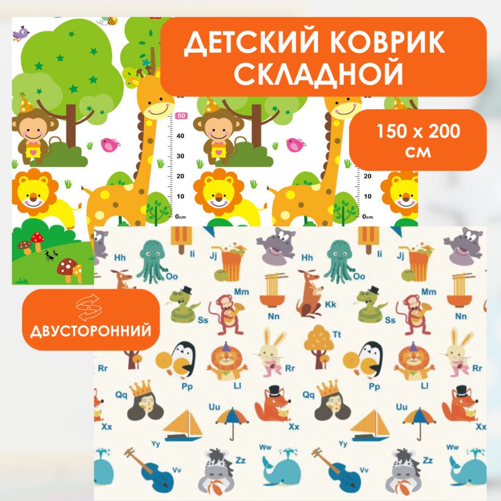 Covoras de joaca pentru copii Alphabet/Lion 150x200cm, 2 fete, termic, anti-derapant, pliabil