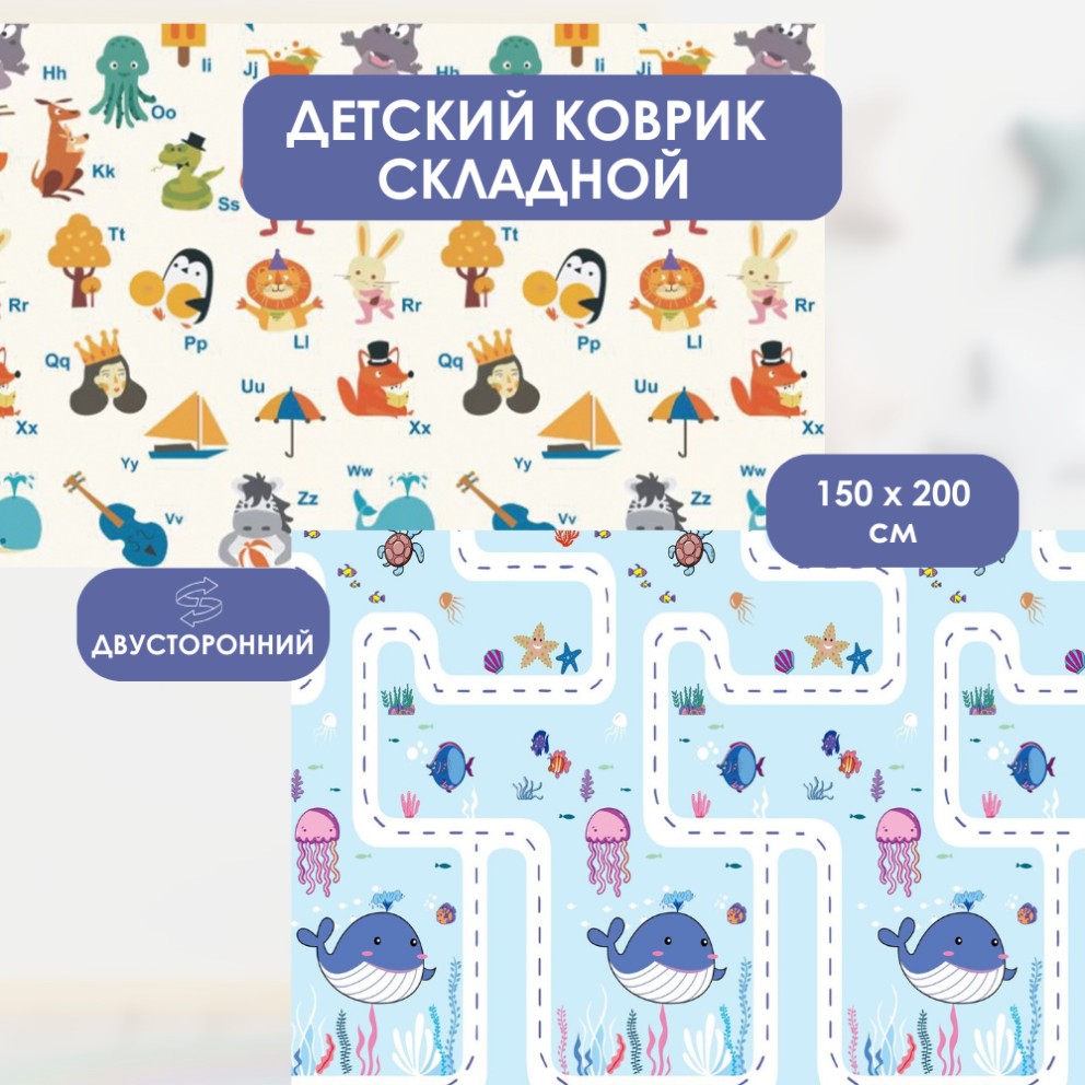 Covoras de joaca pentru copii Sea/Alphabet 150x200cm, 2 fete, termic, anti-derapant, pliabil