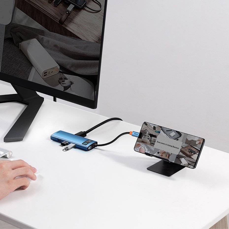 Docking Station Baseus Metal Gleam 8-in-1, USB Type-C to 3xUSB 3.0, Type C PD 100W, HDMI 4K@30Hz, RJ-45 Gigabit, SD, MicroSD, Blue WKWG000103