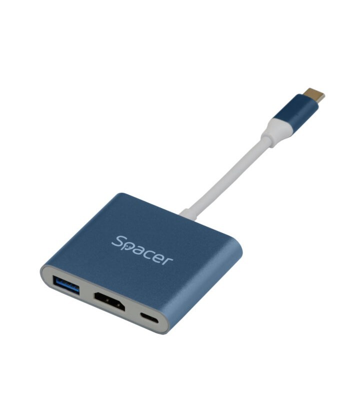 Docking Station Spacer universal 3 in 1, conectare Type-C USB 3.1, USB 3.0 x 1, porturi video HDMI x 1, suporta pana la 4K (30Hz),PD 3.0 pana la 87W,