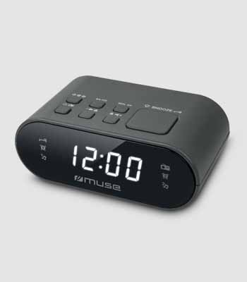Dual Alarm Clock Radio Muse M-10 BLACK, 0.6 inch white LED Display, Dimmer (High /Low/Off), PLL Radio with 20 FM preset stations, Wake up by Radio or