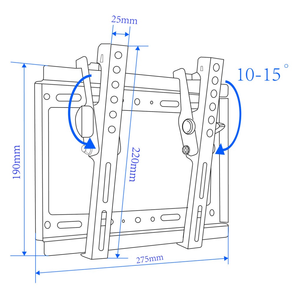 Esperanza TV-Wall Mount 001 ERW001 for 14-50", Max load 25kg, Vesa 75x75-200x200mm, Distance of TV from wall: 24mm, Tilt adjustment up to 15°, level i