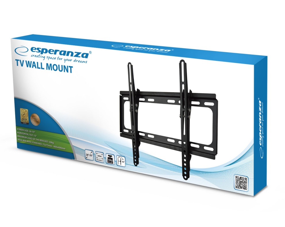 Esperanza TV-Wall Mount 006 ERW006 for 26-70", Max load 30kg, Vesa 75x75-400x400mm, Distance of TV from wall: 35mm, Tilt adjustment up to 15°, level i