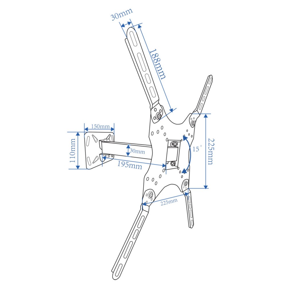Esperanza TV-Wall Mount 007 ERW007 for 26-70", Max load 30kg, Vesa 75x75-400x400mm, Distance of TV from wall: 110-465mm, Tilt adjustment up to 15°, Ho