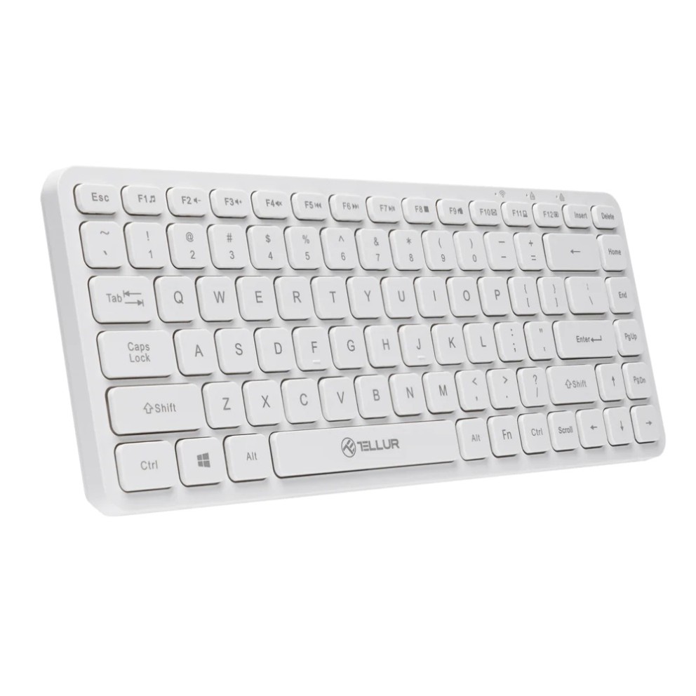 Mini Wireless Keyboard Tellur, 10 meters wireless range, White, US Layout