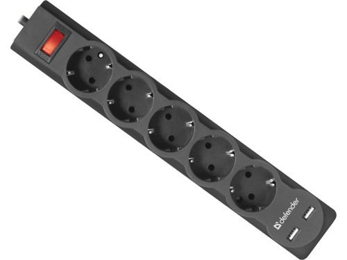 Prelungitor cu protectie Defender DFS753, black, 3.0 m, 5 sockets, 2 x USB