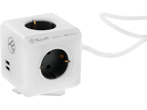 Prelungitor PowerCube, 4 x outlets, 2 x USB ports, 1.5m, Tellur White TLL151111