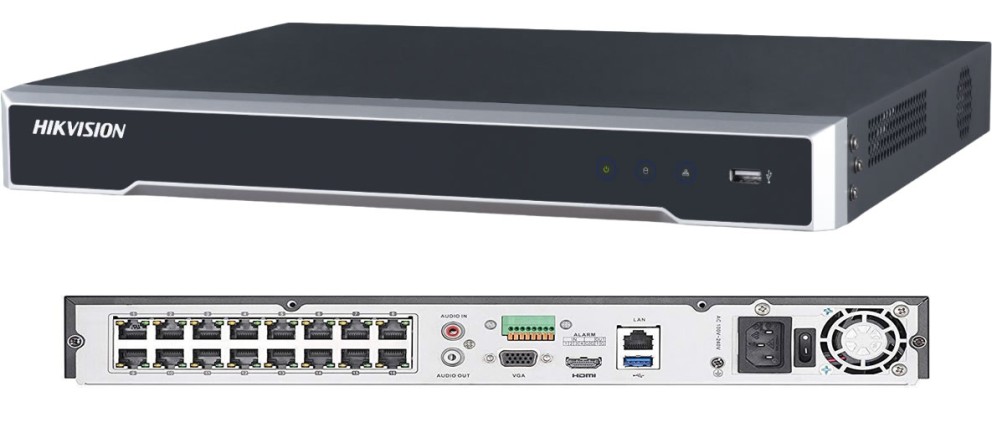 Recorder NVR 16-ch Hikvision DS-7616NI-K2, Input: 160Mbps, 8Мрix(3840х2160) real time!, Output: 80Mbps, HDMI (4K 3840x2160), VGA (1920x1080), H.265+/H