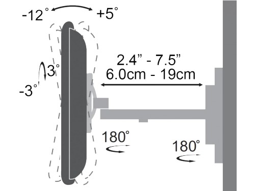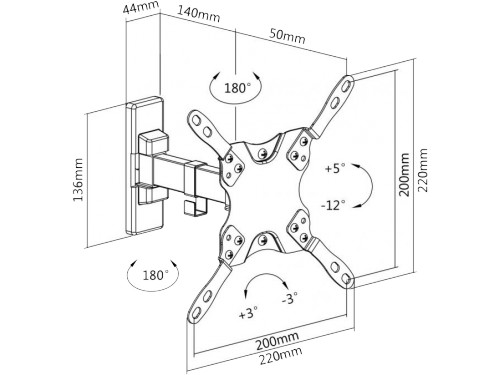 SBOX TV-Wall Mount LCD-221N for 13-43'', Vesa 200x200, Max load 20kg, rotire 180°+180°,inclinatie -12°, + 5°