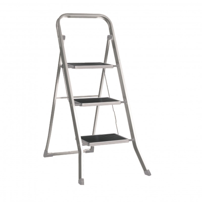 Scara de metal SUPER MAX 3 2123, 3 trepte, 116 x 48 x 6 cm, h-104 cm, max. 150 kg, antialunecare, culoare inox