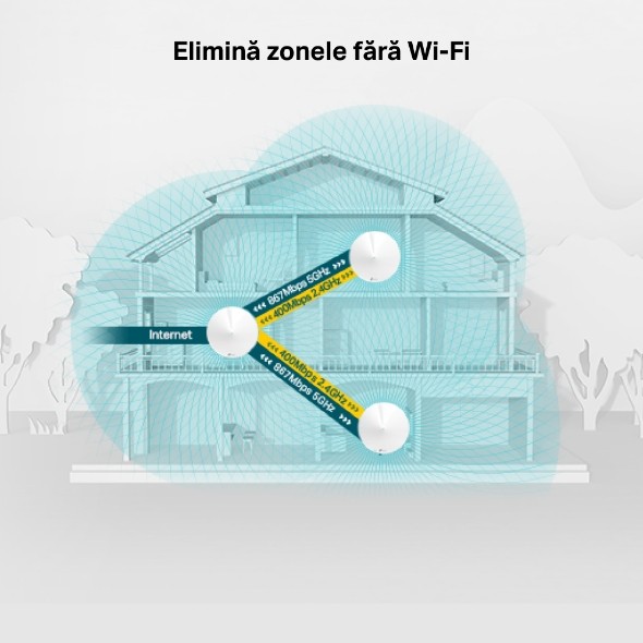 TP-LINK DECO M5 AC1300 Whole-Home Wi-Fi System, Qualcomm, Dual-Band, 802.11ac/a/b/g/n, 717MHz Quad-core CPU, Bluetooth 4.2, 2 Gigabit Ethernet Ports,