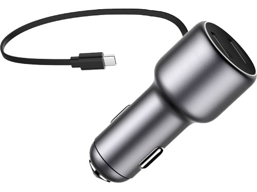 USB Car Charger - Tellur CCY2, 2xUSB (QC 2.4 + 2.4A), cablu Type-C, Silver TLL151151