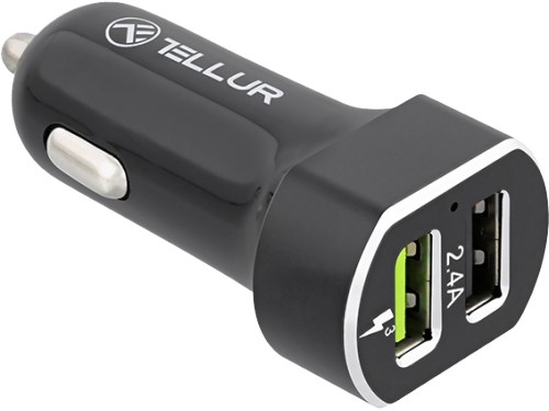 USB Car Charger - Tellur FCC6, 2xUSB (QC 3.0 + 1.5A), Black TLL151191
